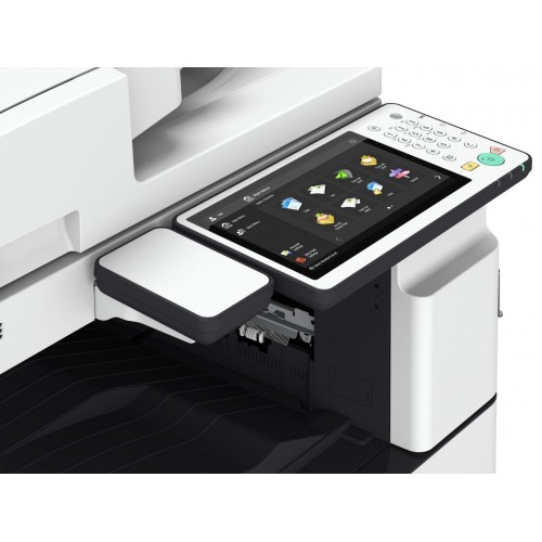 • Kapasitas standar: 1.180 lembar (2 baki cassette 550 lembar + 1 bypass 80 lembar). Maksimal bisa hingga 6.330 lembar dengan tambahan opsi tray